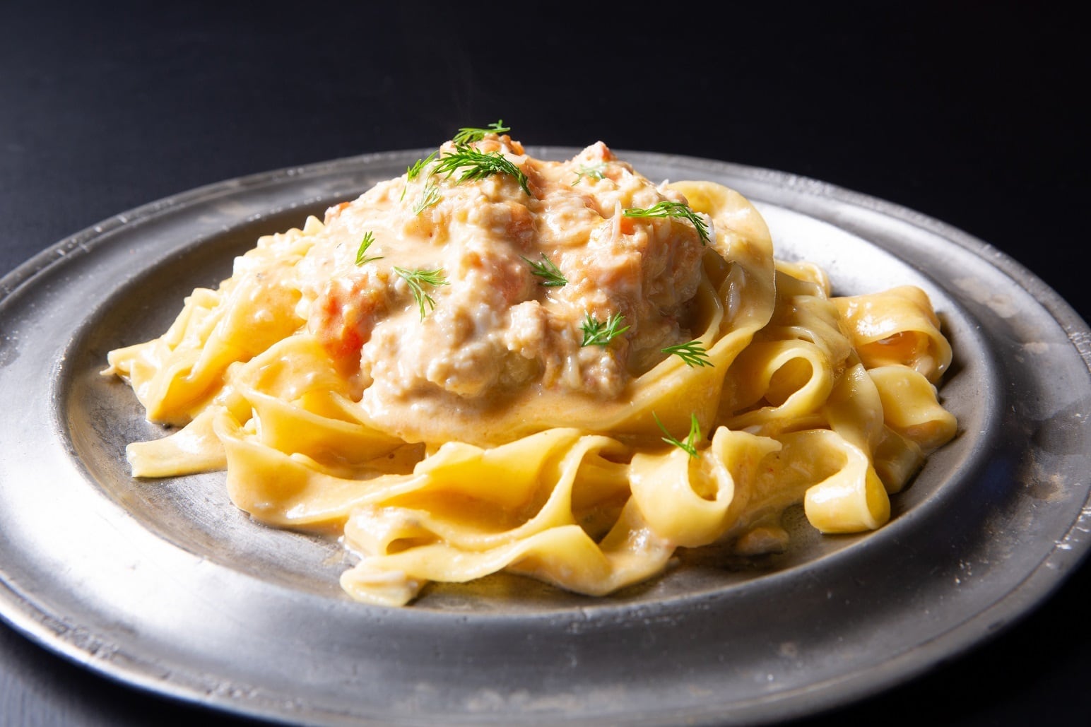 茹でたてのカニ身を濃厚な味噌とからめて食べるのが漁師風。